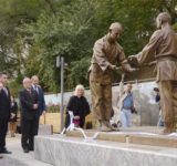 【画像】「ロシア柔道の祖」銅像を建立、極東ウラジオストクで除幕式…嘉納治五郎から「黒帯」受け取る場面イメージ