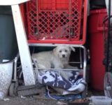 赤いショッピングカートの下で暮らしていた犬。おなかの中のベイビーたちと一緒に保護される(アメリカ)