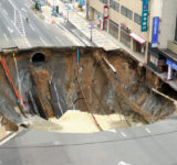 海外「まさか日本で・・・」博多駅前の道路に巨大なシンクホール発生