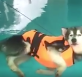 「ぷかーーーっ」・・・犬にライフジャケットを着せて水泳の訓練をさせようとした結果wwwwwwwww