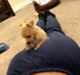 子犬「ここ落ち着く・・・」セクシーな女性のお尻は最高の居心地なようです