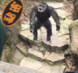 【悲報】これは汚い!動物園のチンパンジー「お婆さん」目がけて「●」投げ、クリティカルヒット!