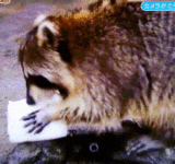 【画像】アライグマ「何だろこの白いふわふわ!美味しそうな匂いがする!でもばっちぃから洗わなきゃ!」