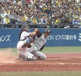 糸井、ブロックしたヤクルト・中村を睨みつける