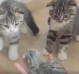 「ニャンだこいつは!?」 赤ちゃん猫に警戒心MAXな子猫達が可愛すぎるwwwwww