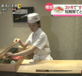 【GIF】寿司職人女さん、やはり修行は3ヶ月では足りなかったwww