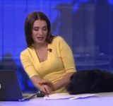 これはかわいい放送事故。ニュース放送中にモノ申したい感じで、ラブラドール・レトリバーが参戦(ロシア)