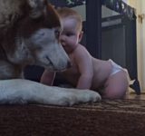 これからもずっといっしょに遊ぼ!赤子にやさしいハスキー氏、ゴロンして惜しみない愛情を示す