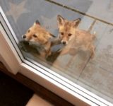 2匹の子ギツネが「あけてあけてー!」とドアをノック (画像あり)
